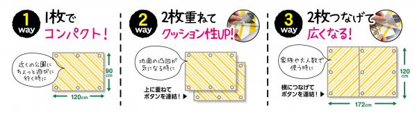 3、2枚を横につなげてボタンで連結すると広く使えます。