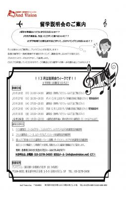音楽留学およびダンス留学の企画・コンサルティングを行うアンドビジョン株式会社では、3月26~30日に≪音楽留学≫特別留学説明会ウィークの参加者を募集しています。