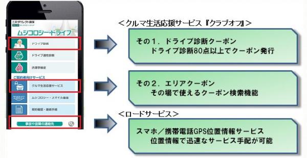 そこで今般、当社が無料で提供しているスマホアプリ「ムジコロジー・ドライブ」も更にご利用いただくため、ご好評いただいているクルマ生活応援サービス『クラブオフ』※の新サービスを2つご用意しました。