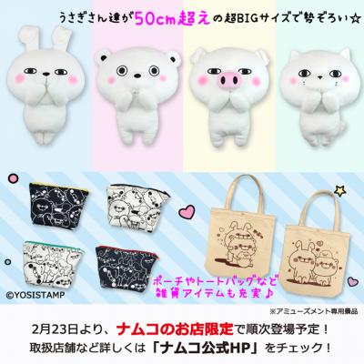 ナムコ限定景品は、50cmを超える超ビッグサイズの「ヨッシースタンプ 超BIGぬいぐるみ-うさぎさん-」をはじめ全6商品をご用意いたします。