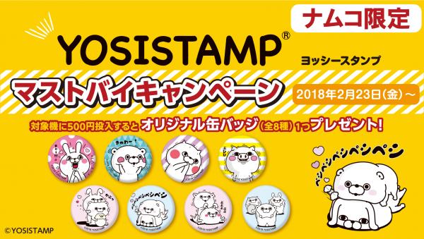 全国で約220店舗のアミューズメント施設を運営する株式会社ナムコは、アミューズメント施設限定景品の導入に合わせて、オリジナル缶バッジがもらえる「ヨッシースタンプ(※1) マストバイキャンペーン」を2月23日(金)より全国137店舗で順次実施いたします。