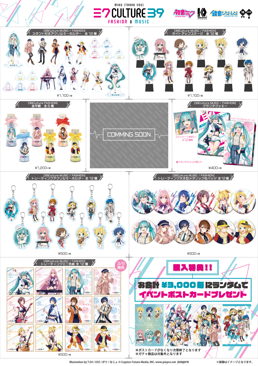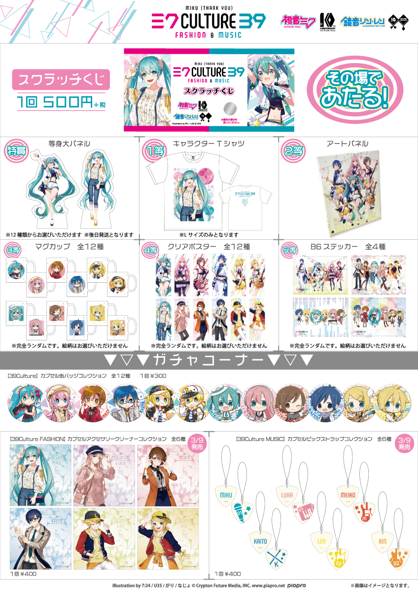 株式会社キャラバンは、展開するグッズブランド『ココラボ』より今年10周年を迎えるバーチャル・シンガー初音ミク・鏡音リン・鏡音レンのコラボレーションストア「39Culture」をPARCO池袋店にて2018年3月2日(金)午前10時より開催いたします。