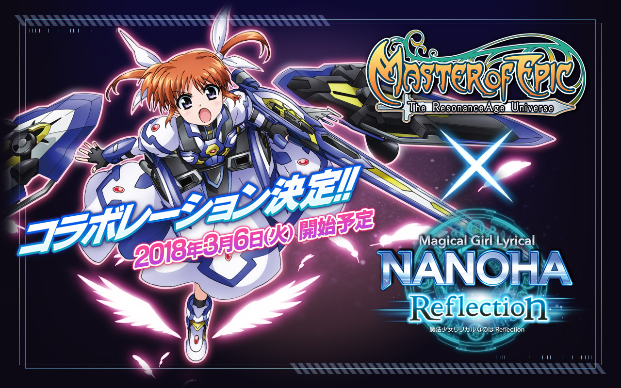 コラボ期間中は『魔法少女リリカルなのはReflection』のキャラクターに扮することができる装備アイテムなど、限定アイテムが多数登場致します。さらに、コラボ限定クエストの実施も決定!この機会に是非、『Master of Epic』での冒険をご堪能ください。