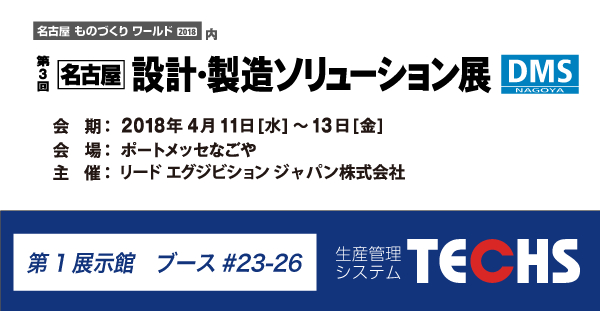 株式会社テクノア は、「第3回〈名古屋〉設計・製造ソリューション展(DMS名古屋)」へ出展いたします。