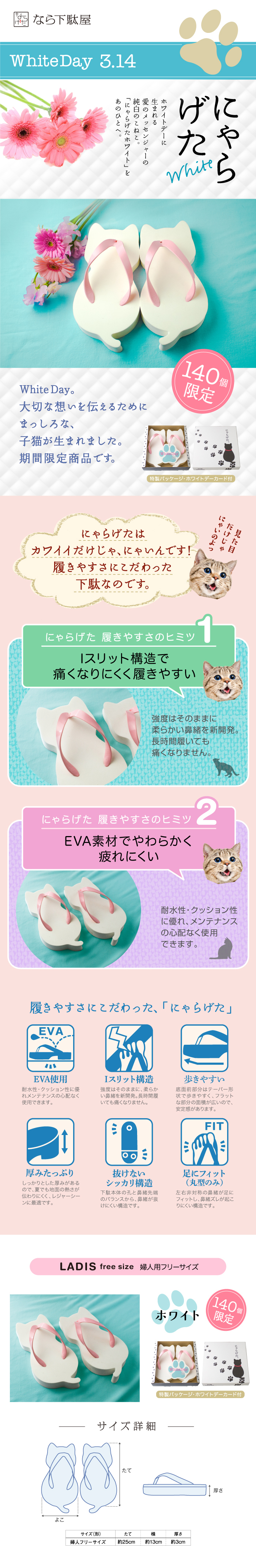 奈良の老舗履物メーカー「なら下駄屋」から、人気商品「にゃらげた」のホワイトデー限定カラー「にゃらげたホワイト」が2018年3月2日(金)より140足限定で新発売!
