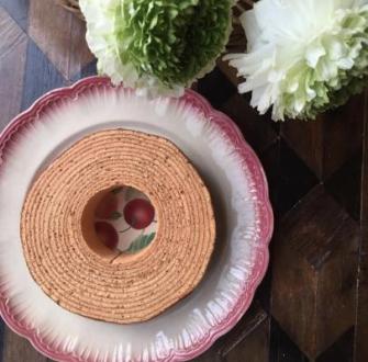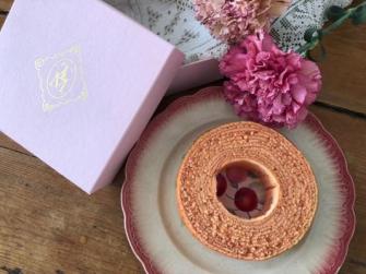 桜の季節にぴったりの、桜の香りとホワイトショコラが入った季節限定のグルテンフリーバームクーヘン