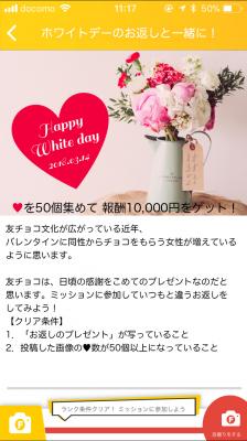 (3)各“ミッション”で指示された条件どおりの自撮り画像を本アプリに投稿し、50件以上の「いいね」を集めると報酬を得ることができます。