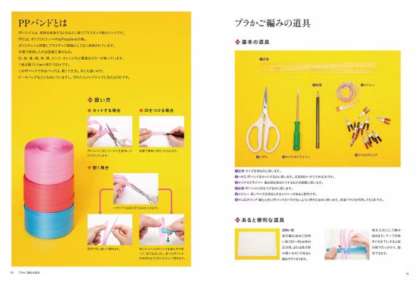 この本では、買い物かご、洗濯籠、入れ子のかご、花六つ目のバッグなど日常で使えるおしゃれなプラかごを30種類も掲載。