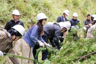 スーパーホテルは、岐阜県東白川村にあるNPO法人青空見聞塾が提供する、村の茶畑や森林などの自然を巡り、村民と交流しながら暮らしと知恵、さらには課題にまで触れる体験型エコツアーを社員研修に取り入れています。