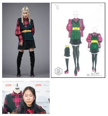 コメント:「一人では何もできないけれど、いろいろな人にサポートしてもらいながら完成させることができました。自分のデザイン画が、どんどん本当に着れる服になっていくのがすごく楽しかったです。」