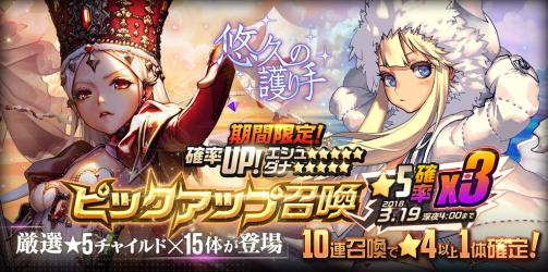 株式会社ステアーズ(本社:東京都新宿区、代表取締役社長 全 寅兌、以下ステアーズ)は、好評配信中のスマートフォン版『デスティニーチャイルド』において、本日3月7日(水)より★5「エシュ」をはじめとする厳選★5チャイルドの召喚確率がUPしている「ピックアップ召喚」が開始しましたことをお知らせいたします。