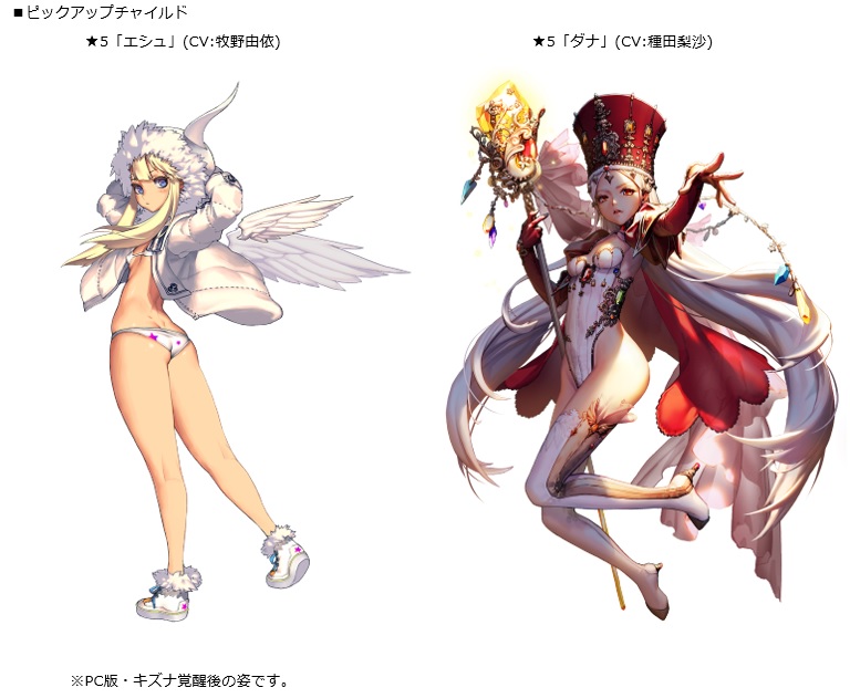 みんなの視線は私に釘付け♪防御型★5「エシュ」(CV:牧野由依)、全てを護る女神!防御型★5「ダナ」(CV:種田梨沙)がピックアップ召喚15体の中でも召喚確率UPで登場!!