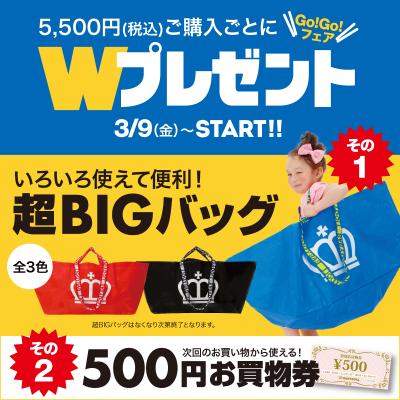 5,500円(税込)ご購入ごとにもれなく「超BIGバッグ」&「500円お買い物券」をプレゼント