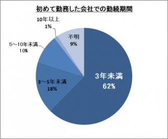 昨今、初めて勤務した会社での勤続期間は「3年未満」で離職した若手社員の割合が6割を超えています。その理由として、「仕事がマンネリ気味」、「人間関係が上手くいかない」、「他社との比較」などから早期転職を考えやすい傾向となっています。