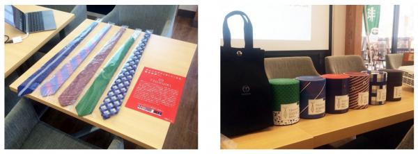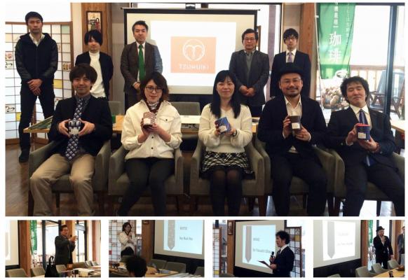 発表会当日は、オリジナルネクタイブランド「TSURUIKI」のターゲットやビジョン、ミッション、バリューの発表とともに、デザインを担当した6名のデザイナーから、各デザインについての説明がありました。また、製造を担当していただいたリード社の谷内氏から、デザインを実体化するために通常の約4倍の糸を使用しているという苦労話や、製造時におけるポイントなどについてお話いただきました。2017年4月のスタートから約1年。プロジェクトの集大成にふさわしい1日となりました。