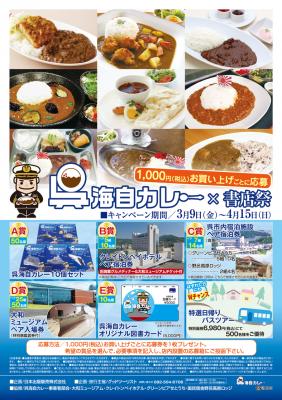今回、呉海自カレー事業者部会(会長:内野 靜男)のご協力のもと、呉市内でのみ販売している「呉海自レトルトカレーセット」やクレイトンベイホテルペア宿泊券などが当たる抽選プレゼント企画を開催しています。また、期間中は実施書店全店で呉海自レトルトカレーの販売も行い、呉海自カレーの知名度拡大と参加書店の売上向上を図ります。