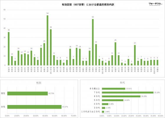 〈調査方法〉全国の電話帳掲載者から無作為に電話番号を抽出し、固定電話に自動音声が電話をかけるリサーチコムで、3月11日(日)に調査した。発信対象は全国の人口分布に基づき15,005件、有効回答607世帯。回答率4%(発信ベース)。