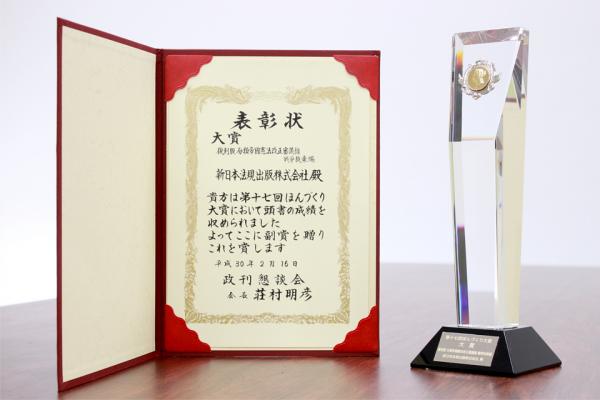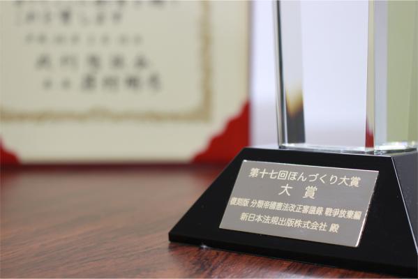 新日本法規出版株式会社(所在地:愛知県名古屋市中区栄1丁目23番20号、代表取締役:服部昭三 http://www.sn-hoki.co.jp/) は、2018年2月16日、政刊懇談会の「第17回 ほんづくり大賞」で、平成29年11月に発刊した「復刻版 分類帝國憲法改正審議録 戦争放棄編」が大賞を受賞しました。