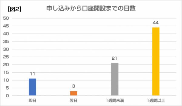 調査対象79名のうち、44名が口座開設申し込みから開設まで、1週間以上かかっていました。(図2)