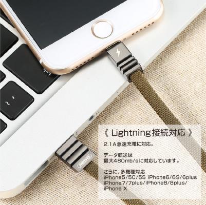 「WEAVE」は、麻布スリーブを採用した美しくかっこいいライトニングケーブルです。無機質なケーブルを布製スリーブと個性的な亜鉛合金コネクタでファッショナブルに楽しめます。急速充電やタブレットで使える2.1A対応、ねじれ・断線に強いフラット型、高耐久TPE材質、高い伝導率の高純度銅線設計、安心の日本語パッケージなど特長を持つデータケーブルです。
