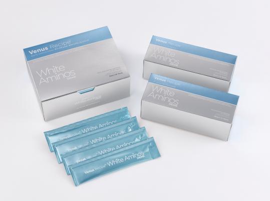 化粧品事業のアクシージアからは、近年大注目の幹細胞&成長因子の研究から開発した新製品エイジングケア美容液「GFセラムパーソナル」を紹介。同時に今年3月に発売予定の美白対策サプリメント「ホワイトアミノズドリンク」の詳細も報告された。