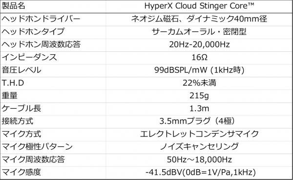 近年、家庭用ゲーム機市場は盛んになり、多くのプレーヤーは、ゲーム体験をより良いものにするため、周辺機器へより強い関心を持つようになりました。家庭用ゲーム機のプレーヤーがヘッドセットに求めることは、長時間装着しても快適であることと、軽量であることです。今回、発表されたCloud Stinger Coreは、HyperXの優れたサウンドクオリティと快適性を維持するだけなく、さらなる軽量化を実現しました。音量調節付きでヘッドホンとマイクの音量も素早く、簡単に調節できます。またお手頃な価格設定のため、ゲーム初心者の方にもとてもお薦めの製品です。