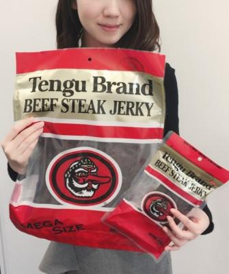 本品は、2016年に新発売された『テング ビーフステーキジャーキー激辛』や、一口サイズでお手頃価格の少量パック『テング ビーフステーキジャーキーバイツ』に続き、新たに「テングブランド」に仲間入りします。