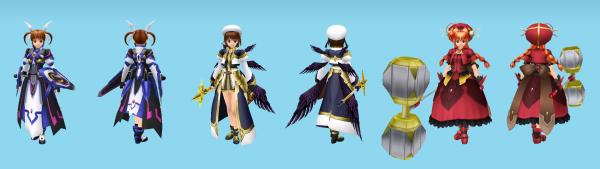 左「高町 なのは(フォーミュラモード)なりきり装備セット」、中「八神 はやてなりきり装備セット」、右「ヴィータなりきり装備セット」