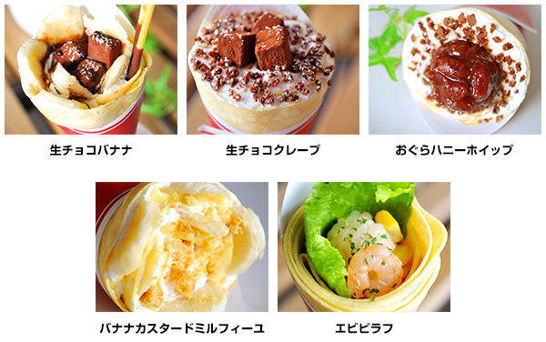 3月23日のオープン時点では、10種類のクレープをご用意しています。