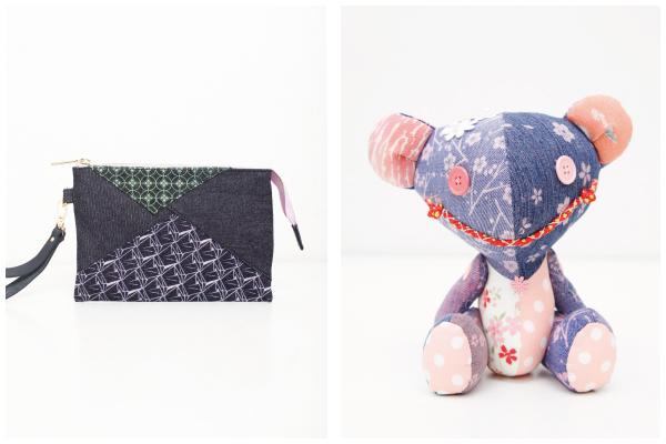 ピンク・黄色・水色・黄緑を中心とした女性が使いたくなる色を使用し、桜や梅など可愛らしい柄モチーフを、京都デニムが得意とする伝統技法で表現しました。また、アイテムの種類も、日常的に女性の生活に取り入れていただきやすいバッグ・ポーチ・財布など、新たなアイテムを製作いたしました。全て同じものは一つとしてない一点物です。