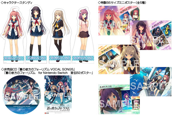 また、『蒼の彼方のフォーリズム』関連商品を1会計5,000円(税込)以上ご購入頂いた方に先着で【非売品CD 「蒼の彼方のフォーリズム VOCAL SONGS」】と【「蒼の彼方のフォーリズム for Nintendo Switch 宣伝B2ポスター」】を