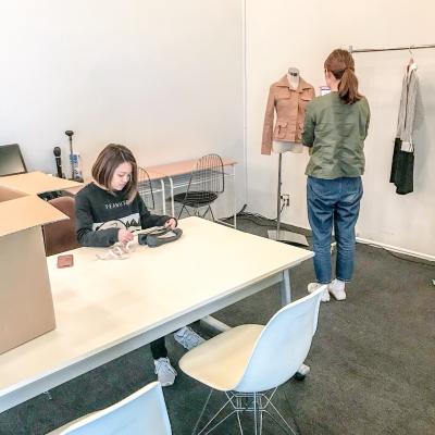 撮影コーナーでは撮影をサポートするツールとして、ハンガーや白いアイテムを撮影するのに役立つ背景、自由な場所で電源を利用するための延長タップやWi-Fiを完備しております。将来的にはさらなる設備充実を目指しております。