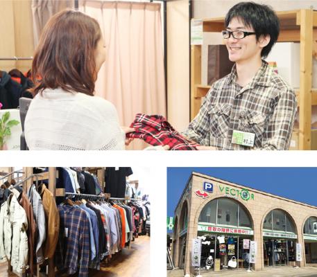 「ゴミバコのないセカイへ」を企業理念とし、全国に86店舗展開するリサイクルショップ「ベクトル」とブランド古着通販サイトの運営をしております。オンライン宅配買取サービス「フクウロ」や店舗で仕入れた古着ファッションアイテムを自社運営通販サイト「ベクトルパーク」を始め、楽天やYahoo!オークション等で販売するマルチチャネル販売戦?をとっており、取り扱いアイテム数は常時70万点以上と日本最大級の品揃えを実現しています。また、在庫を一元管理する独自のシステムを業務提携による他社へ提供し各社のリユースビジネスを支える新たな取り組みを?っております。