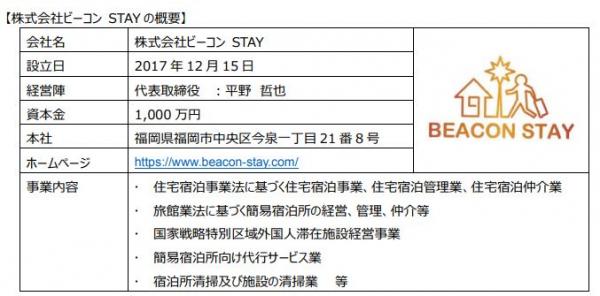 今般、資本・業務提携を行うビーコン社について、シノケンは同社が有する民泊運営に関するノウハウ及び成長性に着目し、資本拠出を行うとともに、同社が持つノウハウのシノケンへの取り込み、及びシノケンが保有又は管理する物件のビーコン社への民泊提供等を行い、新たなステージを迎える民泊市場において、パイオニアとなることを目指して参ります。