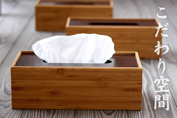竹ティッシュケースの蓋部分がウレタン塗装仕上げの竹集成材になって新登場。従来は網代(あじろ)編みを施した上蓋でしたが、竹集成材に変更することでシックで落ち着いた雰囲気になりました。和洋問わず、どんなお部屋でもご愛用いただけそうです。