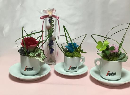 カップ&ソーサーに入ったワンフラワー(3種)