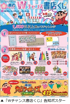 この「映画クレヨンしんちゃん」のオリジナルプロモーション「クレヨンしんちゃん 春の書店まつり」を、当企画の参加書店で実施します。