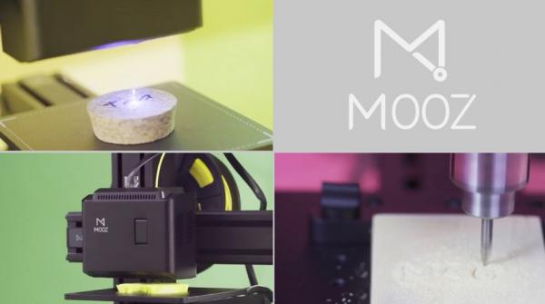 DOBOT MOOZは、TechShareが販売代理店を務めるShenzhen Yuejiang Technology Co. Ltd(以下、Yuejiang Technology社)が開発した3Dプリント、レーザ彫刻、CNC彫刻が1台でできるコンパクトプライベート工房のキャッチフレーズで紹介する工作機です。