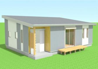 国産材を100%使用に拘り三河地区の建築業者で集成材や構造用合板などを使用しないオール無垢材の住まい作りをしている、今回開発した1000万円の住まいは一次取得層や子育てを終えた2人暮らしの世代に焦点を合わせている。建物は平屋建て(標準モデル58m2)でLDK+洋室を中心に構成している。柱、梁・桁・内装材などに無垢材の国産杉材を使用、土台には国産桧を使用し板倉作りとした、木質感あふれる仕様とした・ウレタン断熱材による外断熱工法で断熱性を高めた。オプションでロフト設置できる。