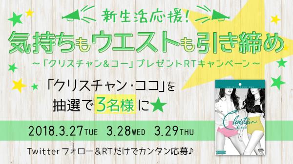 キャンペーンとして、Twitterのフォロー&リツイートで当たる「クリスチャン・ココ」