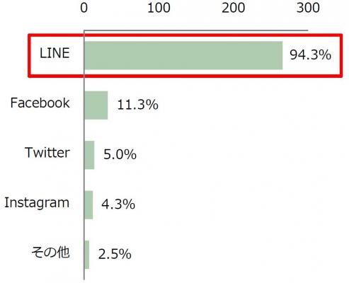 また、「SNSでやり取りをする」と回答した282名を対象に、保護者の友人との交流でよく使うSNSを聞いたところ1位は「LINE(94.3%)」、2位は「Facebook(11.3%)」3位は「Twitter(5.0%)」という結果になりました。