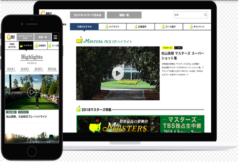 ■配信内容: 松山英樹ら注目選手のプレーハイライトやインタビューなど