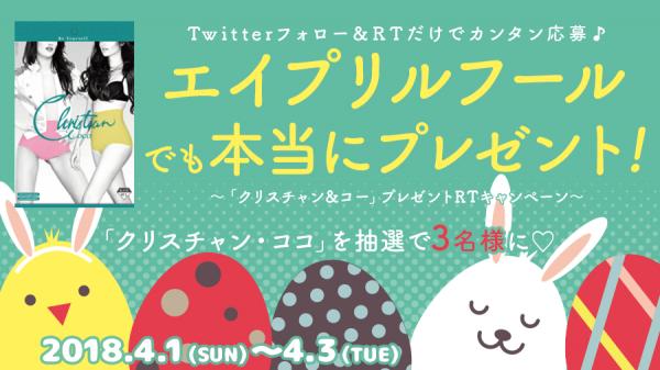 株式会社クリアネス(本社:東京都中央区、代表取締役:崎野 雅司、以下 クリアネス)は、4/1(日)より3日間、Twitterのフォロー&リツイートで当たる「クリスチャン・ココ」(骨盤ショーツ)プレゼント企画を開催致します。