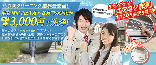 内容: エアコン洗浄 「お試し」3,000円 キャンペーン