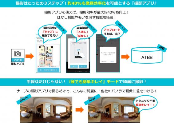 今回、アットホームとの提携により実現する「VR内見・パノラマ」では、撮影した画像を不動産業務総合支援サイト「ATBB(アットビービー)」に登録することで、全国のサービス導入不動産店舗で閲覧できる環境が整います。VRによる住まい探しの新しいカタチを、全国の転居を検討しているお客様に体験いただくことが可能になります。
