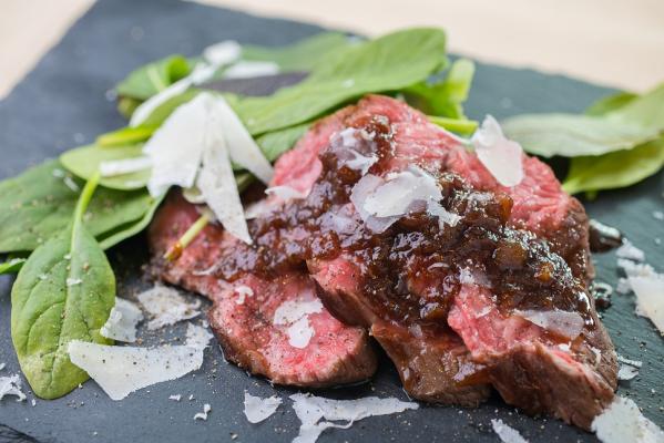 4月2日(月)から27日(金)までの期間中は、「A5ランク佐賀牛のタリアータ さがほのかのイチゴのソース添え」(写真)、「うなぎの素焼き 柚子香る旨味ソース」(写真)、「佐賀海苔たっぷり佐賀牛海苔めし」などのメニューのほか、江戸時代からこの地で続く天吹酒造の日本酒をメニューに取り揃えます。店内では採れたて旬の野菜の販売、動画の放映をするなど、みやき町の魅力を存分にPRします。また、ご来店いただいた方にはもれなく、ふるさと納税でも人気の「田中さんのレインボートマト」をおもてなしとして無料提供します(ランチタイムは除く)。
