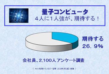 先端テクノロジーの市場調査会社、AQU先端テクノロジー総研(代表、子安克昌)は、このたび、調査報告書、『量子コンピュータの需要探索と関連市場動向に関する調査』-AI機械学習を加速させる量子コンピュータの開発動向、需要探索-を4月3日発刊いたしました。この調査では、一般企業で働く会社員、経営者、2100人にアンケート調査を実施したところ、量子コンピュータに対する期待は29.6%で、4人に1人強の人が、量子コンピュータを前向きととらえていることが分かりました。