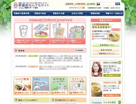 NPO法人 腎臓サポート協会では、ホームページ『腎臓病なんでもサイト』などを通じて、腎臓病患者さんとそのご家族に役立つ情報を提供しています。また会員の方は無料で腎臓病のオンライン相談を行っております。