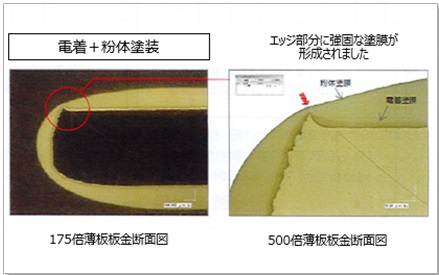 端面エッジ防錆性能剤(マイクロゲル)配合によりエッジ部分の塗装強度の向上を図りました。