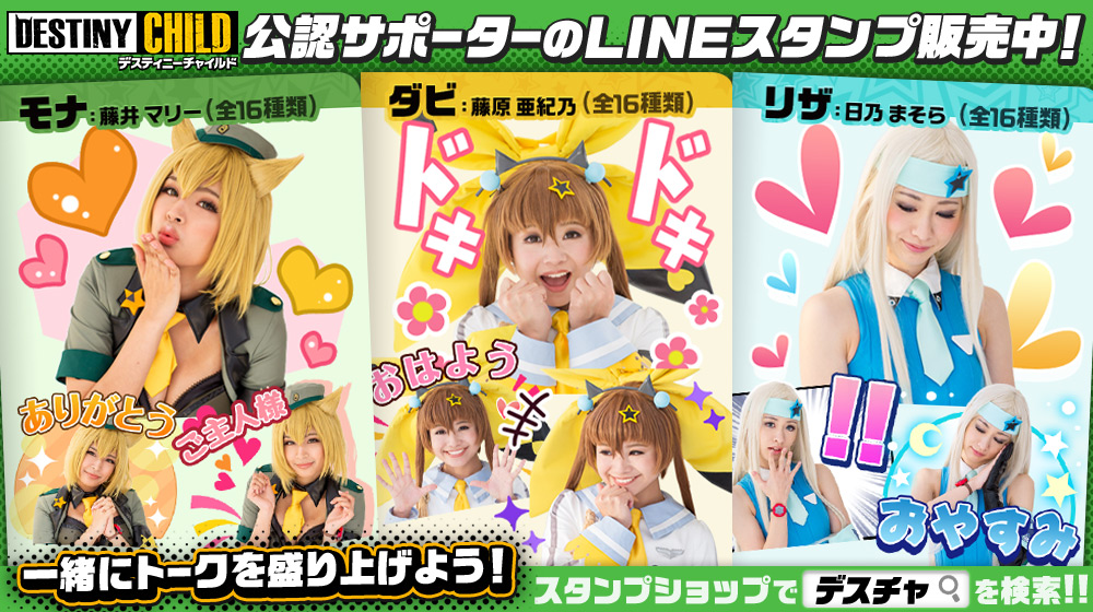 また、期間限定で『デスティニーチャイルド』公認サポーターのLINEスタンプが販売開始となりましたことをあわせてお知らせいたします。